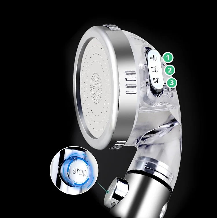El MineralStream BLACK - Filtración de vitamina C Reduce el consumo de agua en un 30%, a la vez que aumenta la presión del agua en un 200%. Nuestro innovador plato de ducha cuenta con 250 orificios cortados a láser que expulsan una pequeña cantidad de agua a gran velocidad. Así, podrá disfrutar de duchas potentes y suaves sin preocuparse por las facturas de servicios públicos. Además, el botón STOP detiene el flujo de agua. y Mantiene su temperatura.