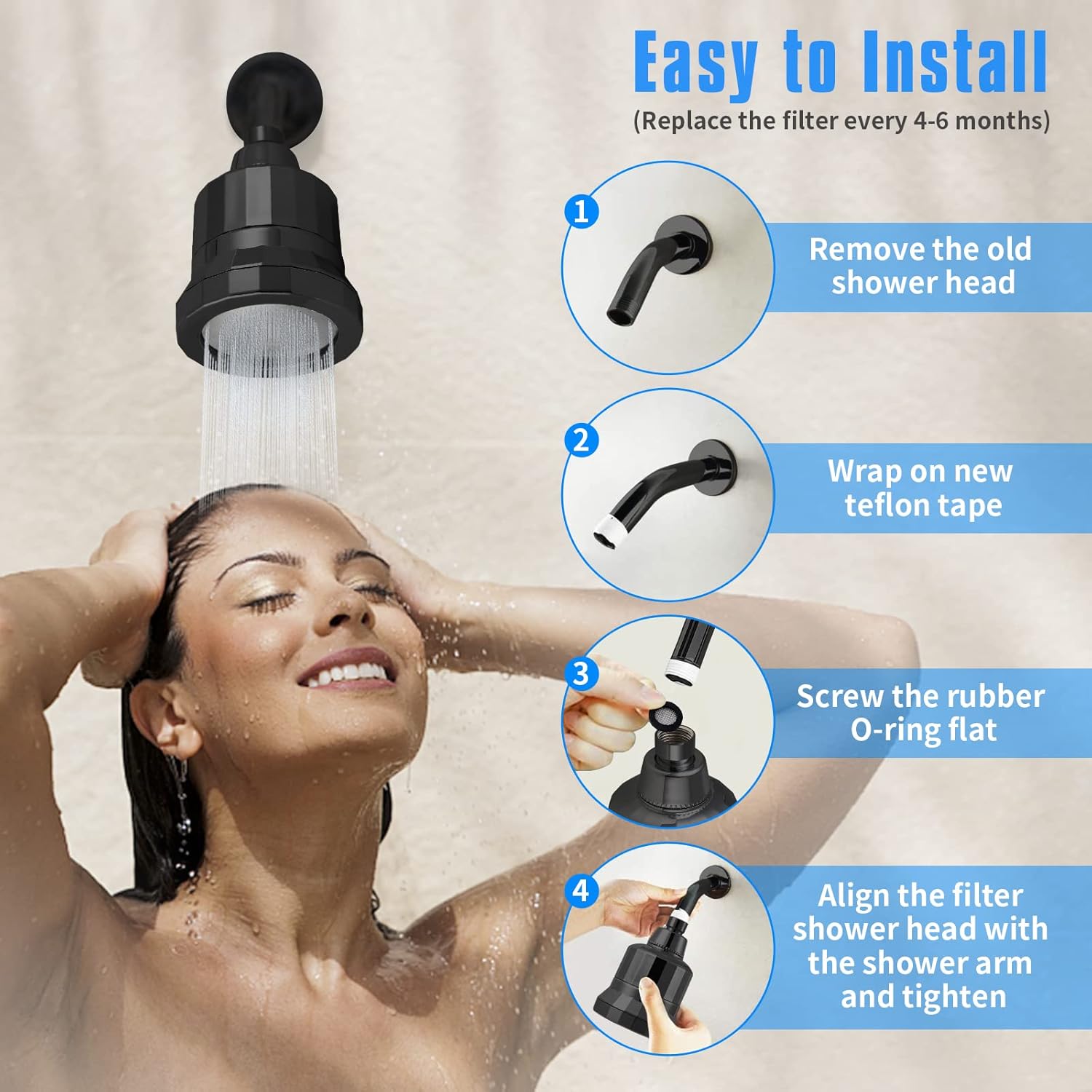 Unlock the secret to radiant, hydrated skin with the advanced 15-stage filtration system. Designed to purify your water, this shower head eliminates chlorine, heavy metals, and impurities that can dry out and irritate your skin. By softening hard water, it helps maintain your skin's natural moisture balance, leaving it feeling soft, smooth, and nourished after every shower.