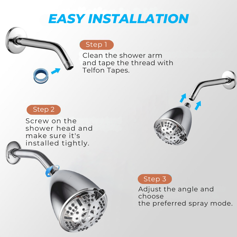 All you need to do is unscrew your old shower head and screw on your new one using the plumber’s tape! No tools or plumber’s assistance needed. Additionally, its high-quality build ensures easy maintenance.